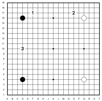 Sarà compito tuo decidere la politica da tenere nei suoi confronti, puoi giocare in modo pacifico o in maniera aggressiva distruggendo gli insediamenti nemici sul nascere oppure trovare una via di mezzo. Questo rappresenta il secondo principio più importante nel Go e padroneggiarlo è tutt’altro che facile. Il buon senso vuole che, essendoci 4 angoli,i giocatori se li spartiscano. Adesso abbiamo 3 scelte principali:
